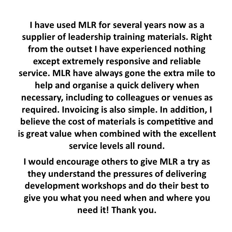 Management Learning Resource is a trading name of Be More Effective Ltd. Training Materials Provider
