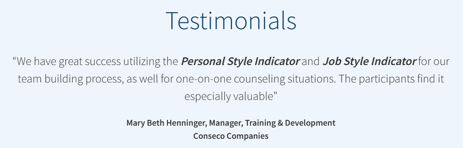 - Provide a roadmap to match each person’s preferred work style and work environment to help him or her more intentionally select the best job, role, and/or career