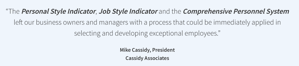The Manager’s Job Style Indicator (M-JSI) helps you prioritize the types of tasks and the style behaviors required in the position. This is the enhanced version of our Job Style Indicator where up to 5 different individuals provide their feedback on the style requirements of a specific position.